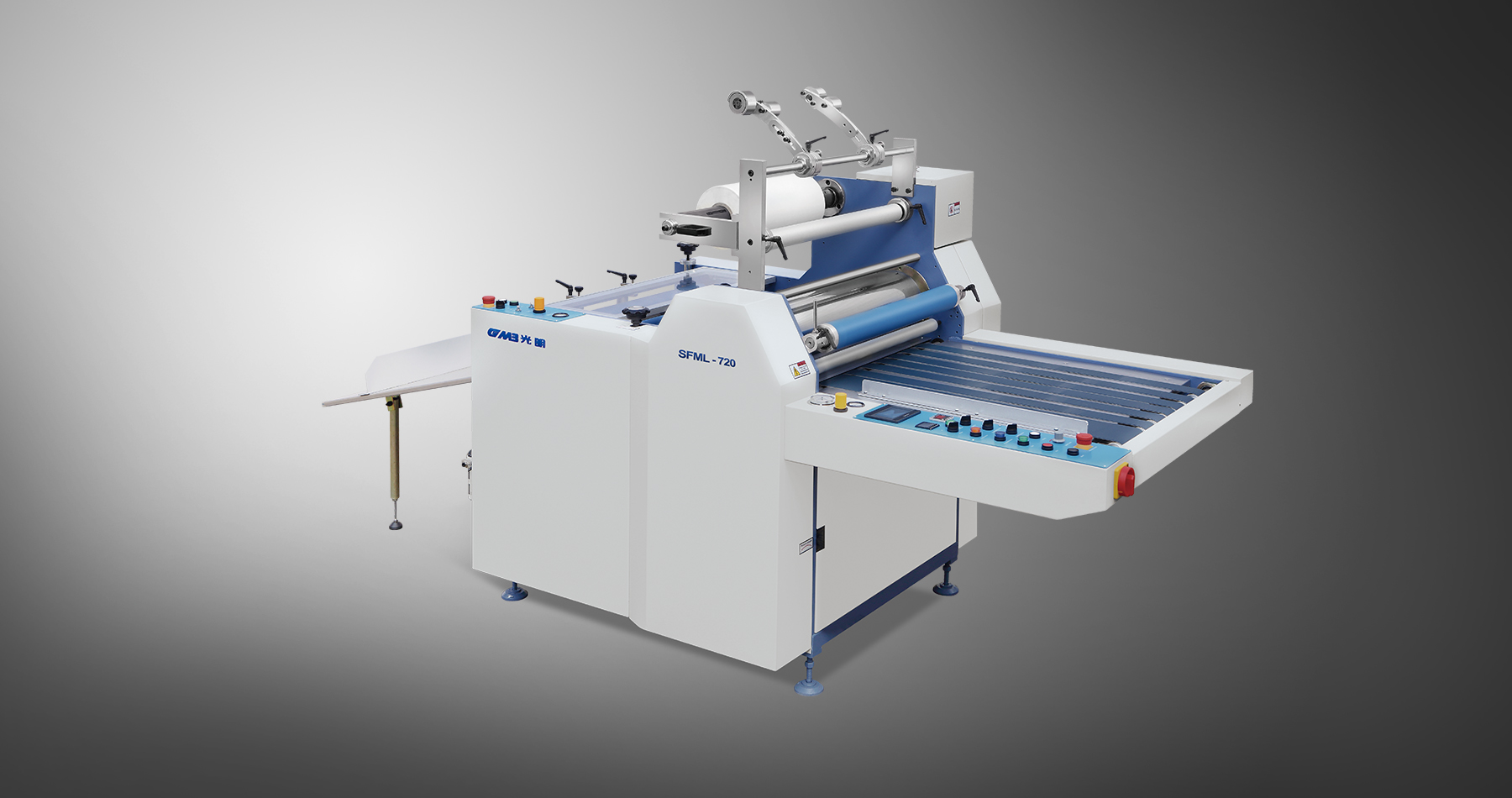 SFML-520B機(jī)型結(jié)構(gòu)緊湊,操作方便,電氣系統(tǒng)由可編程控制器集中控制,彩色觸摸屏,一人即可操作, 用戶只需輸入待加工的紙張尺寸,就能實(shí)現(xiàn)覆膜與分切兩道工藝。